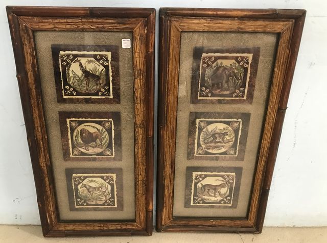 Modern Shadow Box Safari Wall Art, made in China, bamboo style framed, 32"h., 16"w. Modern Shadow Box Safari Wall Art, made in China, bamboo style framed, 32"h., 16"w.