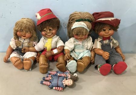 Group of Collectible Dolls, vintage, plastic with wood grain design, 6 dolls. Group of Collectible Dolls, vintage, plastic with wood grain design, 6 dolls.