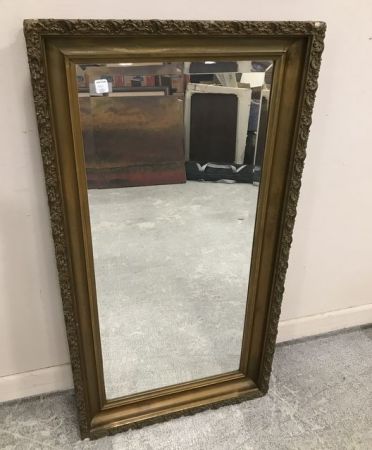 Vintage Rectangle Gold Gilt Framed Wall Mirror, beveled mirror, has some trim missing , 47"h., 24"w. Vintage Rectangle Gold Gilt Framed Wall Mirror, beveled mirror, has some trim missing , 47"h., 24"w.