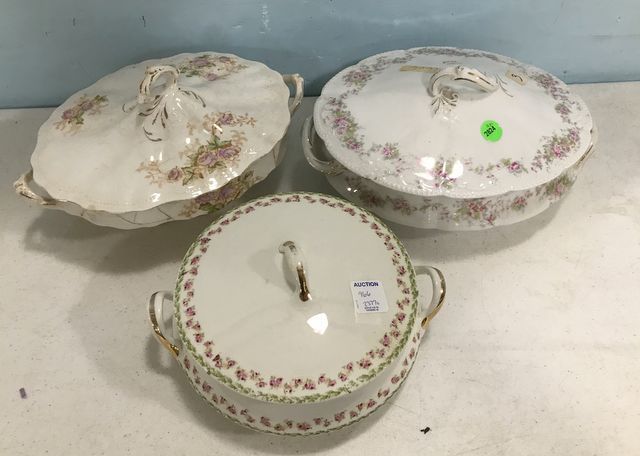 Three Porcelain Covered Tureen, Homer Laughlin, Limoges, hand painted porcelain. Three Porcelain Covered Tureen, Homer Laughlin, Limoges, hand painted porcelain.