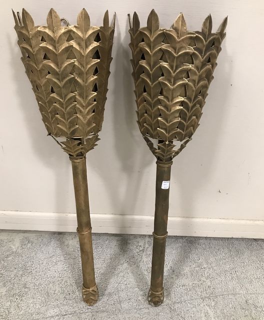 Large Gold Gilt Color Wall Decor Planters, two, metal, 37"h. Large Gold Gilt Color Wall Decor Planters, two, metal, 37"h.