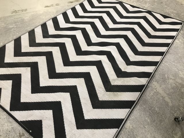 Fab Habit Reversible Indoor/Outdoor Rug, black and white, dirty, 5'11 x 8'9. Fab Habit Reversible Indoor/Outdoor Rug, black and white, dirty, 5'11 x 8'9.