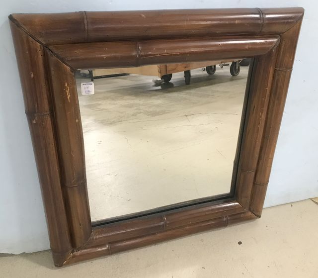 Square Bamboo Style Wall Mirror, has some wear, 24"h., 24"w. Square Bamboo Style Wall Mirror, has some wear, 24"h., 24"w.