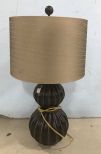 Rustic tone unique shaped table lamp, with shade, 30"h. Rustic tone unique shaped table lamp, with shade, 30"h.