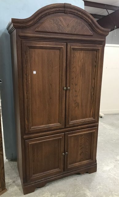 Riverside Furniture Company Entertainment Cabinet, TV section, double door, double door bottom, oak finish, one piece, 86"h., 41"w., 22"d. Riverside Furniture Company Entertainment Cabinet, TV section, double door, double door bottom, oak finish, one piece, 86"h., 41"w., 22"d.