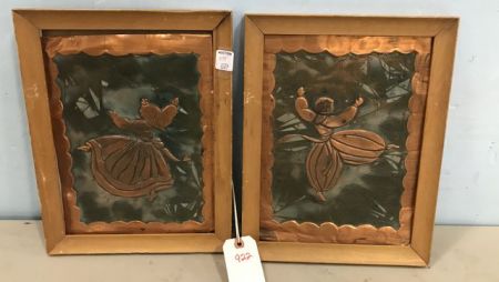 Pair of Copper Panels Artwork, children dancing, small framed, 14"h., 11"w. Pair of Copper Panels Artwork, children dancing, small framed, 14"h., 11"w.
