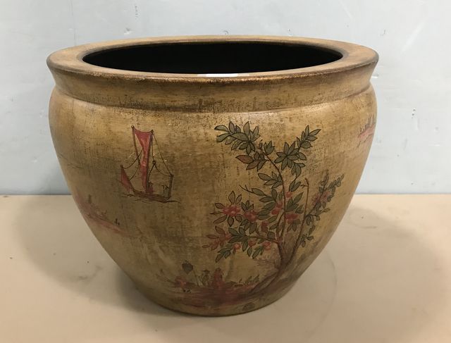 Modern Chinese Fish Bowl Planter, painted ceramic, made in China, 11"h., 14"w. Modern Chinese Fish Bowl Planter, painted ceramic, made in China, 11"h., 14"w.