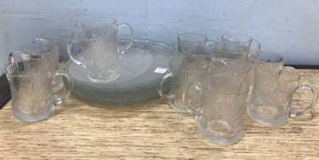 1290 Pressed Leaf Pattern Glass Plates and Cups