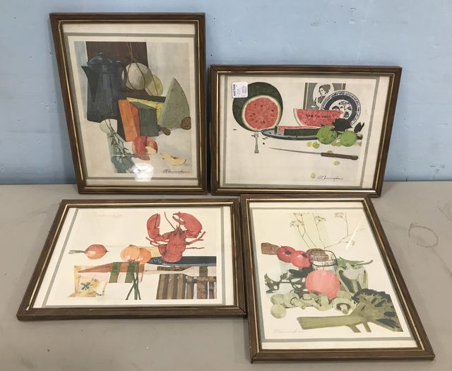 Four small fruit and still life framed prints by Cummingham, 12"h., 9"w. Four small fruit and still life framed prints by Cummingham, 12"h., 9"w.