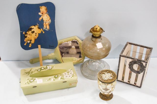 Including hand mirror, tissue box, oil lamp, toothbrush holder and vase Including hand mirror, tissue box, oil lamp, toothbrush holder and vase