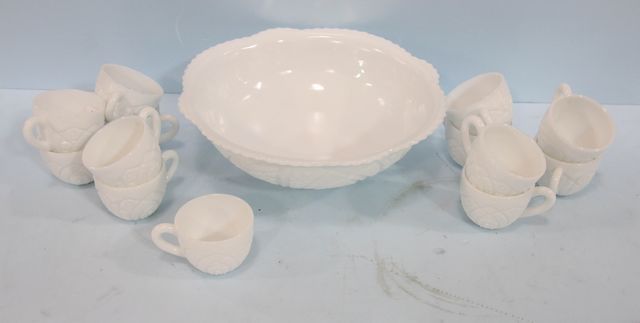 1105 Milk Glass Punch Bowl & Thirteen Cups