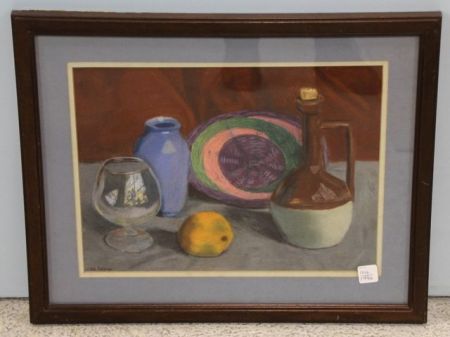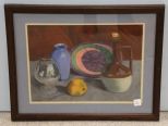 1106 Charcoal of Pottery and Fruit Signed Cleo Ware