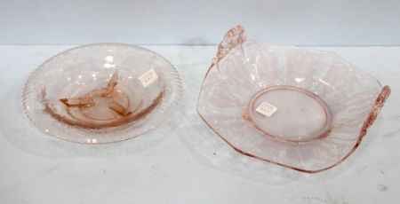 1135 Divided Pink Depression Bowl & Etched Pink Depression Glass Bowl