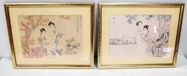 1156 Two Japanese Hand Painted Artworks of Maidens
