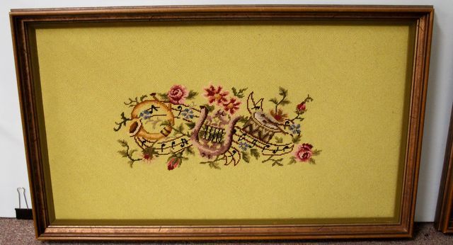 1165 Needlepoint of Harp, Horn and Drums