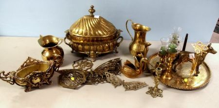 Includes brass tureen, pitchers, swans, tray, candlesticks, butterflies and dog Includes brass tureen, pitchers, swans, tray, candlesticks, butterflies and dog