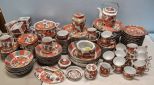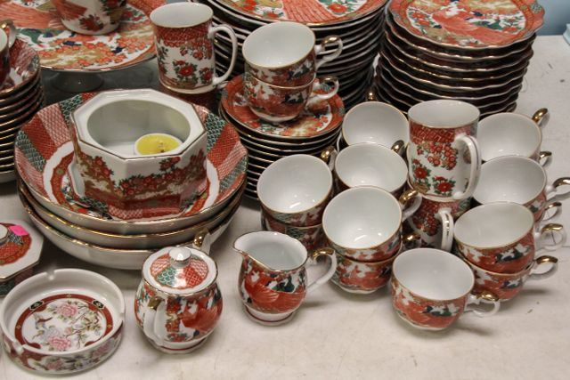 Consists of sixteen plates, three chargers, twelve square dishes, covered jars, teapot, candle holder, creamer/sugar, six mugs, twenty cups, saucers, twelve berry bowls, fourteen salad plates, three vegetable bowls and cake plate Consists of sixteen plates, three chargers, twelve square dishes, covered jars, teapot, candle holder, creamer/sugar, six mugs, twenty cups, saucers, twelve berry bowls, fourteen salad plates, three vegetable bowls and cake plate