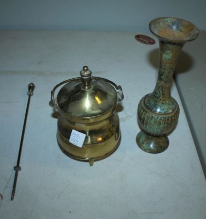 Pot 4" dia. ; metal vase 10" h. Pot 4" dia. ; metal vase 10" h.
