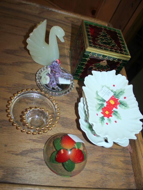 163 Faux Stain Glass Box, Onyx Swan, Bone Dishes