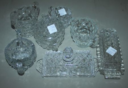 Includes tow butter dishes, three sugars, and two creamers Includes tow butter dishes, three sugars, and two creamers