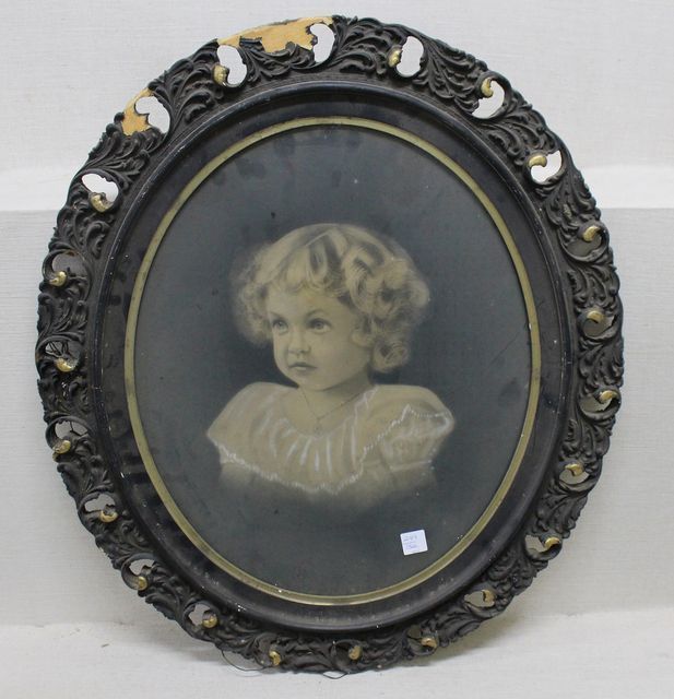 249 Antique Print of Young Girl in Oval Frame