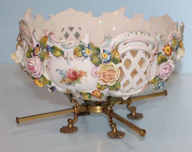 308 Top to a Hand Painted Porcelain Center Piece on Brass Stand