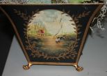 317 Pair of Painted tin Paw Foot Flower Containers with Arrangements