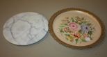 351 Vintag3e Hand Painted Tin Tray and Marble Lazy Susan