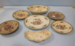 Four plates 6" ; painted plate 8 1/4" ; vegetable bowl (chipped) Four plates 6" ; painted plate 8 1/4" ; vegetable bowl (chipped)