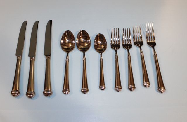Including 3 knives, 2 tablespoons, 1 teaspoon, 3 salad forks, 1 dinner fork Including 3 knives, 2 tablespoons, 1 teaspoon, 3 salad forks, 1 dinner fork