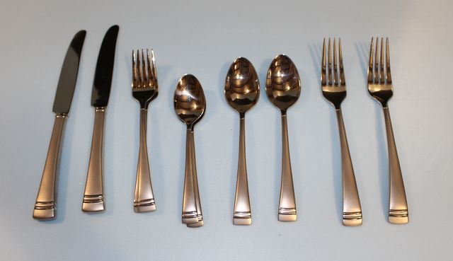 Including 2 dinner forks, 2 salad forks, 2 tablespoons, 2 teaspoons, 2 knives; 10 total pieces Including 2 dinner forks, 2 salad forks, 2 tablespoons, 2 teaspoons, 2 knives; 10 total pieces