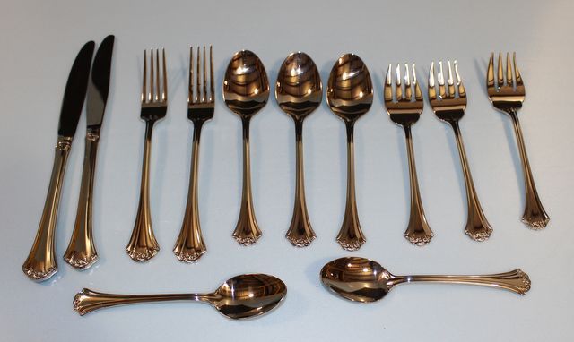 2 knives, 3 salad forks, 2 dinner forks, 2 teaspoons, 3 tablespoons; 12 piece total 2 knives, 3 salad forks, 2 dinner forks, 2 teaspoons, 3 tablespoons; 12 piece total