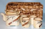 638 Ceramic Teapot with Cups, Basket