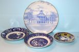 Old state capitol 7 /2" dia. ; blue willow dish 5" ; oriental dish 4 1/2" dia. Old state capitol 7 /2" dia. ; blue willow dish 5" ; oriental dish 4 1/2" dia.