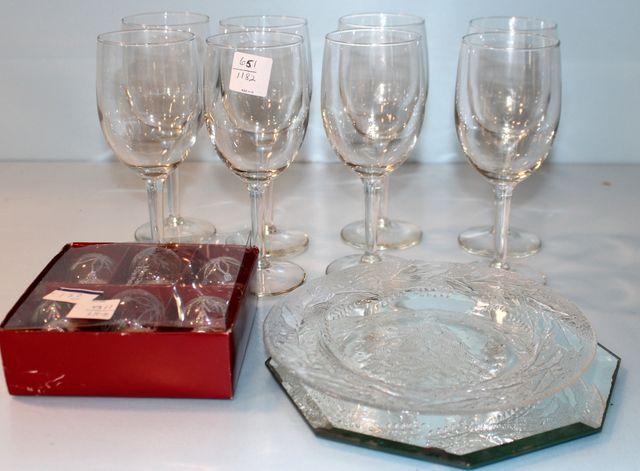 651 Set of Eight Glasses, Photo Clip, Place Card Holders, Plate, Trivet