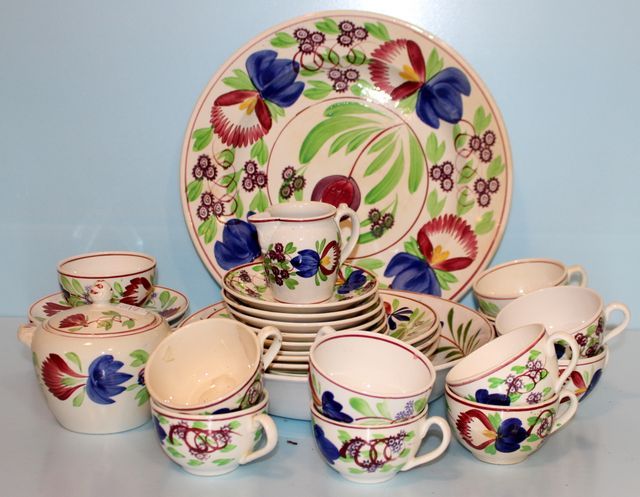 709 Made in Holland Ceramic Cups/ Saucers, Sugar/ Creamer, Large Round Tray, Bowl, Three Bowls