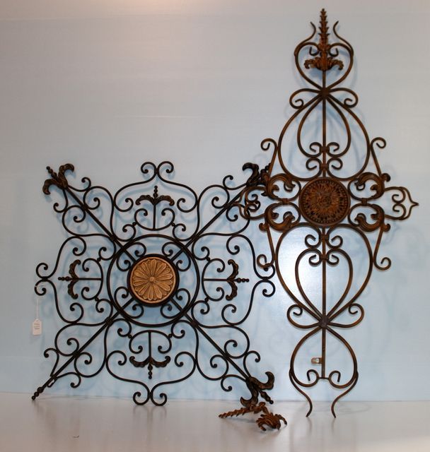 One iron plaque 25" w., 28" h. ; second iron plaque 19" w., 46" h. One iron plaque 25" w., 28" h. ; second iron plaque 19" w., 46" h.
