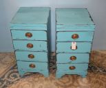 760 Pair of Hand Brushed Distressed Pointed Turquoise Blue Four Drawer Stands