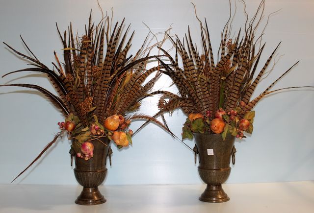 793 Pair of Pheasant Feather and Fruit Centerpieces