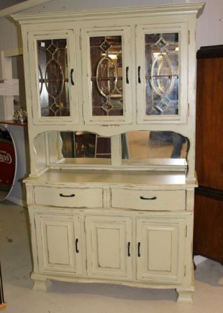 798 Hand Brushed Distressed Painted Two Piece Hutch