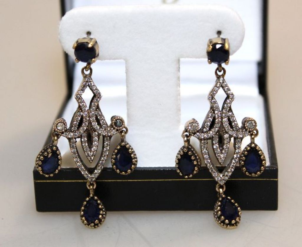 113 Genuine Sapphire Estate Chandelier Earrings