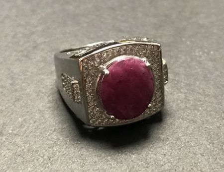 Men's .925 Ruby with Pave Ring, size is 10. Men's .925 Ruby with Pave Ring, size is 10.