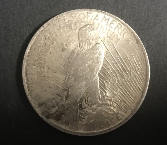 1922 Peace Liberty Dollar, good condition, no makers mark, needs cleaning. 1922 Peace Liberty Dollar, good condition, no makers mark, needs cleaning.