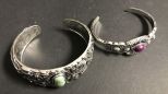 Two ornate metal center stones cuff bracelets. Two ornate metal center stones cuff bracelets.