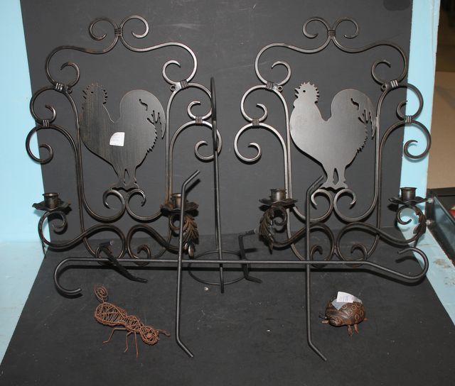 Iron Rooster Sconces, Bettle Bug, Grasshopper, and 2 Stands Iron Rooster Sconces 18"h., 12"w., Bettle Bug, Grasshopper, and 2 Stands Iron Rooster Sconces, Bettle Bug, Grasshopper, and 2 Stands Iron Rooster Sconces 18"h., 12"w., Bettle Bug, Grasshopper, and 2 Stands