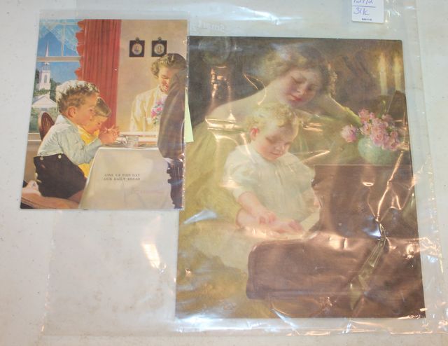 Two Vintage Prints "Give us this day our daily bread" 4"w., 6"h., "The first lesson" 6" x 8". Two Vintage Prints "Give us this day our daily bread" 4"w., 6"h., "The first lesson" 6" x 8".