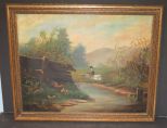 Oil Painting of Ducks signed M. E. tear on right side, 22"w., 18"h. Oil Painting of Ducks signed M. E. tear on right side, 22"w., 18"h.