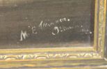 153 Oil Painting of Ducks signed M. E. tear on right side, 22"w., 18"h.