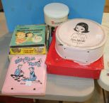 224 50's-60's Pink Rhythm Tote with Records, McCall's Tote Bag, Barbie Suitcase, Puzzle, Story Book Library, View Master 50's-60's Pink Rhythm Tote with Records, McCall's Tote Bag, Barbie Suitcase, Puzzle, Story Book Library, View Master