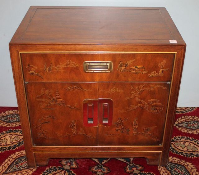 Heritage Furniture Bedside Table Chinese Chippendale style bed side table, 25"w., 17"d., 24"h. Heritage Furniture Bedside Table Chinese Chippendale style bed side table, 25"w., 17"d., 24"h.